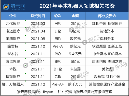 在过去的一年,医疗机器人领域的投融资市场一片火热,尤其是细分赛道手术机器人领域。随着行业步入快车道,各路企业掀起了不少水花,至于精锋医疗能否表现出理想的估值、融资能否支撑其持续性发展,还要看其后续的表现如何了。