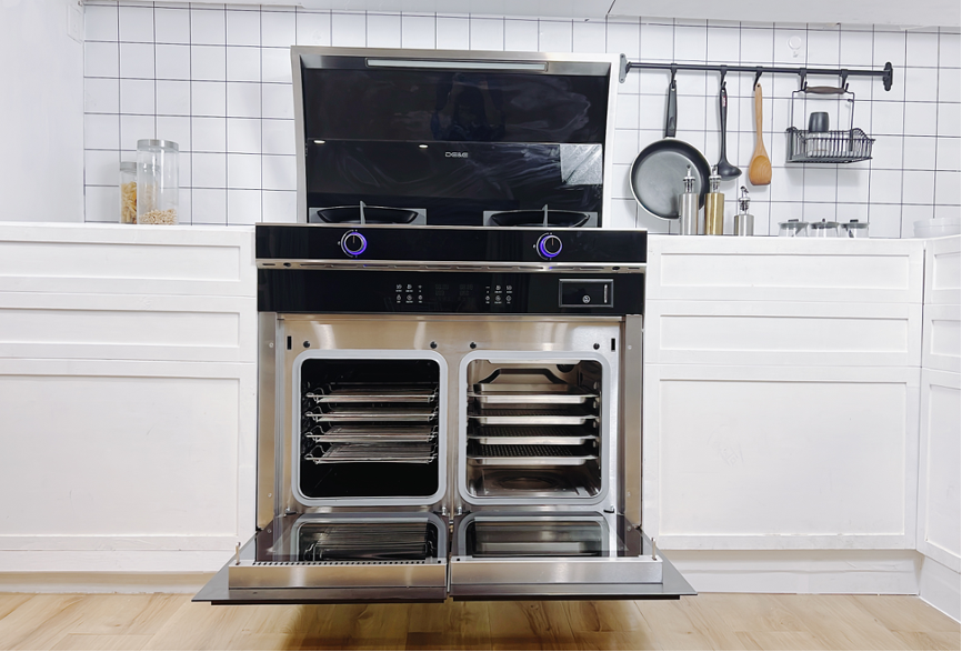另外作为集成灶十大品牌之一的德意集成灶,也可以轻松满足烹饪中的煎炒炖蒸烤多样烹饪需求。而且蒸烤十分均衡,其独立出的蒸烤空间,可以在行业中称鼎,让人“大”开眼界,没错,这里的大就是指空间大。48L纯蒸空间+48L单烤空间,可容纳16个标准餐盘,同时搭配了4层隔架设计,可以放入八个蒸箱盘,足够十口人的聚餐所需的食物供给。即使家里来客人了,需要做很多菜,德意集成灶都可以容纳得下。而且德意集成灶都蒸烤盘互联共通,支持花样蒸烤,可做的菜品更丰富,家里孩子、老人吃饭也可以达到营养更均衡,美味不再受限,德意集成灶让你随心所欲做出想要的饭菜。