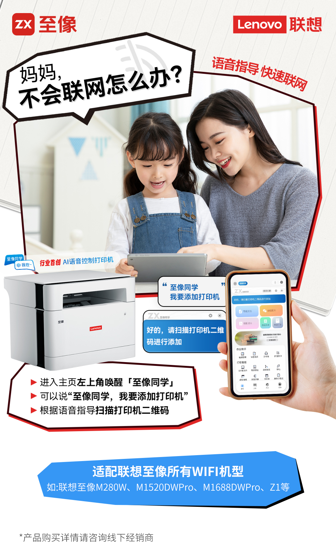 通过升级,用户现在可以通过联想至像的小程序或APP,仅凭简单的语音指令,就能轻松完成网络配置、文档打印以及票证打印等任务。这一创新显著提升了打印效率,标志着打印方式的一次重大革新。