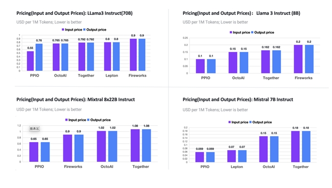 在三项创新技术的支持下,派欧算力云产品基于自研的推理加速引擎能够迅速适配和优化开源大模型,第一时间上架Llama3.1-405B、Mixtral 8x22B等20多个开源高性能大模型,API正常运行时间达到99.99% 。与GPT-4o相比,通过派欧算力云产品微调和优化的Llama3.1-70b模型,其Input token价格降低了90%,Output token价格降低了95%。派欧算力云产品还通过第三方大模型API平台为全球开发者提供高性能推理服务,相比于OctoAI、Lepton、Together、Fireworks等硅谷公司,派欧算力云产品在综合性价比上具有显著优势,确保开发者在享受高性能、稳定的推理服务的同时,获得前所未有的成本效益。