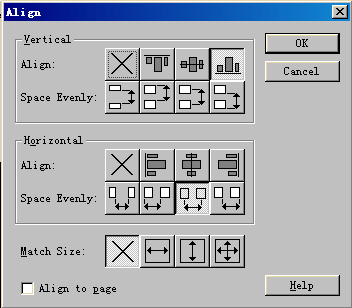 做好这几个图符后,在时间轴窗口新建八个层,使层的总数变为九个。按Ctrl-L打开图库窗口,在最上面一层,把“欢”字图符拖到主场景中。在第二层把“迎”拖到主场景中,依此类推,把这九个字分别放在不同的层上。然后用箭头工具拉一个大框把所有文字都套住,按Ctrl-K打开对齐窗口,如下图所示: