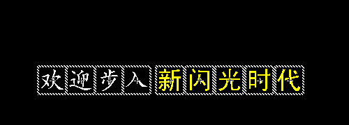 然后选择要产生这种效果的文字,我在这里选择“欢迎步入新闪光时代”这九个字。因为每一个字我们都要单独做动画,所以必须把每个字单独做成一个图符,然后分别放在不同的层上。我们可以在主场景中分别写下这几个字,然后分别按F8转换成图符,也可以直接按Ctrl-F8新建图符,然后再编辑。