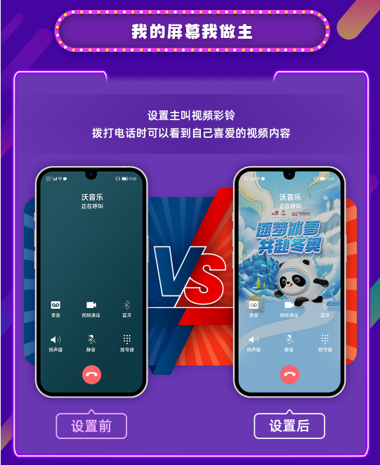 如果说主叫彩铃为用户提供独自欣赏的空间,被叫彩铃则为用户开辟了表达个性的众多窗口。亲友每次呼叫都可看到用户设置的个性被叫彩铃,助力用户打造专属来电新名片。