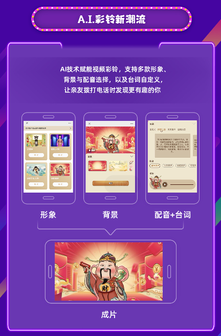 DIY何止如此!5G+AI技术加持下,中国联通视频彩铃百变会员还推出了“AI视频彩铃特权”黑科技新潮流玩法。用户可任意挑选多元化的虚拟形象、彩铃背景及配音,还可选择平台预设的或自定义台词,化身主角出现在视频彩铃当中,展示更有趣的自我。