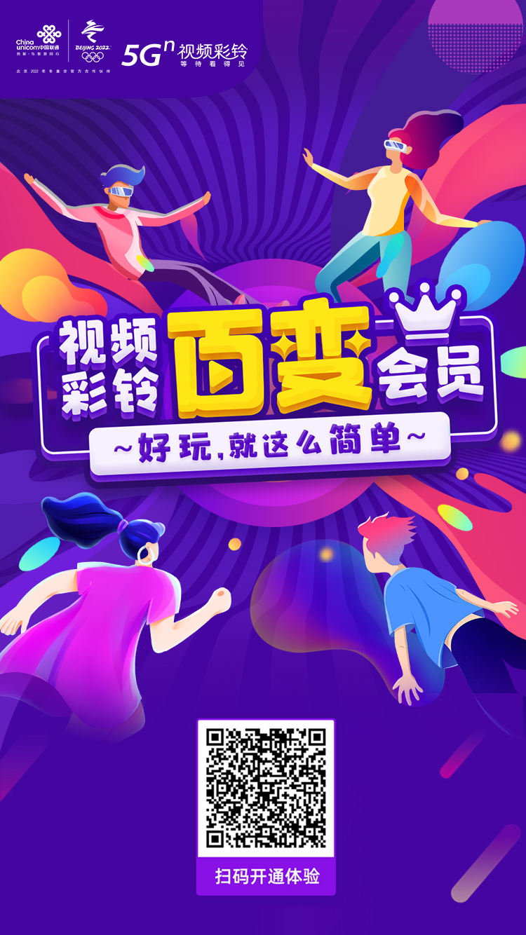 5G时代,视频社交全面爆发,短视频成为人们消磨时光、分享倾诉的首选方式。本次中国联通视频彩铃打造的百变会员,融会贯通主流视频彩铃玩法,将带领广大用户尽情畅享视频时代。每月仅需10元就能拥有超丰富“视频彩铃宝库”,扫描海报二维码了解详情并订购!