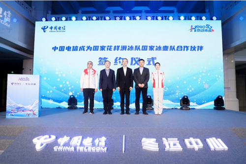 12月15日下午,中国电信携手国家体育总局冬季运动管理中心举行“中国电信成为国家花样滑冰队和国家冰壶队合作伙伴”签约仪式,中国电信正式成为国家花样滑冰队、国家冰壶队合作伙伴。同时,由中国电信与中央广播电视总台央视频共同打造、5G云网融合技术与优质冰雪赛事内容相结合的专属定制产品——中国电信互联网星卡·央视频冰雪版也正式发布。发布会以“Hello 5G, 燃动冰雪”为主题,正在紧张备战的国家花样滑冰队运动员王诗玥、柳鑫宇,国家冰壶队运动员南佳文、范苏圆、马秀玥发来了视频祝福;前国家花样滑冰队运动员世界冠军张丹、前国家冰壶队冠军选手汲岩松亲临发布会现场,为本次合作打CALL。