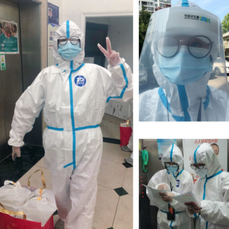 陆晓韵,分公司客户服务部客服岗主管,中共党员。为积极响应党中央和公司党委号召,带头踊跃报名田林街道志愿者服务,并动员家属一起参加。4月1日,入选封控期内小区北区的志愿者指挥部,负责为小区巡逻志愿者制定排班表、分发抗原检测盒,并在小区非核酸检测时段巡逻巡查,确保居民“足不出户”。当小区开始核酸检测时,陆晓韵需要协助做好核酸检测预约、排队指引、现场秩序维护等工作。问她为何执着于成为抗疫志愿者时,陆晓韵认真回答:“身为一名青年党员,在这个艰难的时刻就应该挺身而出,这是理所当然的。每次脱下防护服呼吸到新鲜空气时,我也更能体会到医护人员的不易,希望疫情快点散去,上海早日恢复活力。”