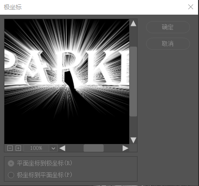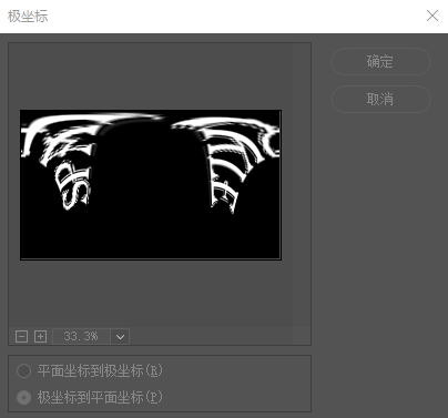 接着执行“图像”→“图像旋转”→“逆时针90度”,然后执行“滤镜”→“扭曲”→“极坐标”,勾选“平面坐标到极坐标”,如图。