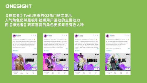 甚至从OneSight营销云后台对其Q2热门帖文分析中,我们还可以看出,在《神觉者》Twitter主页,受欢迎的角色棕色、褐色等深色皮肤设计占大多数。