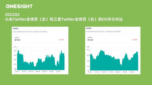 我们将小米的Q2最佳社媒主页——Twitter全球页与三星的Twitter全球页做对比可以发现,在主页粉丝数为百万级vs千万级(小米400.21万vs三星1250.51万)的前提下,小米的Twitter全球页仍然获得了827.9分的超高主页OS评分,而三星的Twitter全球页只有814.3分的主页OS评分。