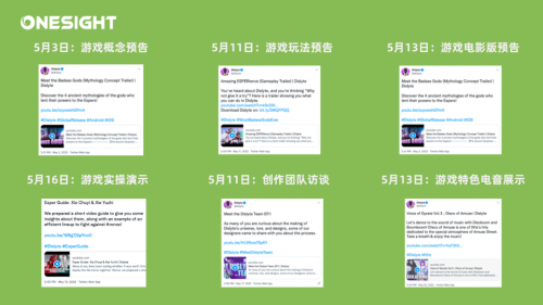 以游戏正式上线为时间节点,《神觉者》在其官方Twitter账号上除了持续发布游戏角色和玩法相关内容之外,开始分别于游戏正式上线的前两周和第一二周持续释放游戏世界观、玩法、团队访谈等基础内容的宣传片。