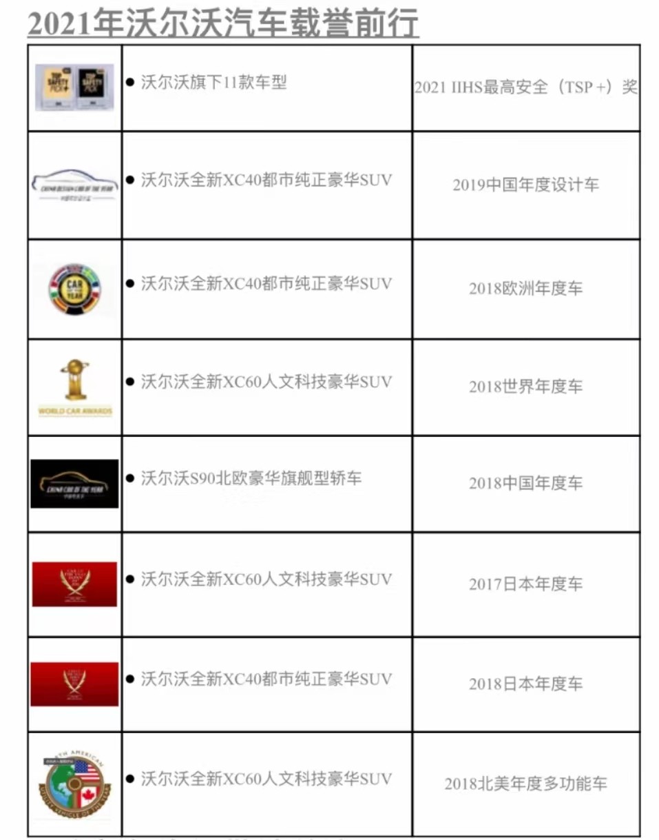 沃尔沃品牌(Volvo Cars)1927年成立于瑞典。“沃尔沃”来自拉丁语,意为“滚滚向前”。今天,沃尔沃产品畅销100多个国家,已成为全球知名且享有盛誉的豪华汽车品牌之一。2021年,沃尔沃汽车已在纳斯达克斯德哥尔摩交易所上市,交易代码为“VOLCAR B”。