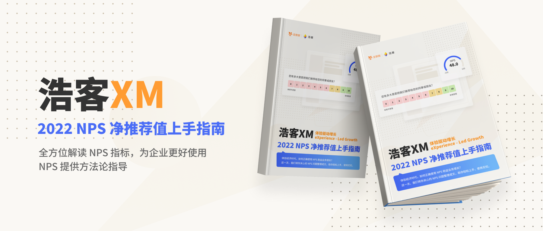 自 2003 年被美国贝恩咨询公司提出,短短十几年内,NPS 已经成为衡量客户体验应用最广泛,也最直观的北极星指标,吸引了全球诸多知名企业的争相引用。为帮助更多企业正确使用 NPS,实现口碑与业绩的双提升,近日,金数据旗下新一代数字化创新体验管理平台浩客发布了《2022 NPS 净推荐值上手指南》(下简称“指南”),对 NPS 指标进行了全方位的解读,旨在为企业更好地使用 NPS 提供方法论指导。