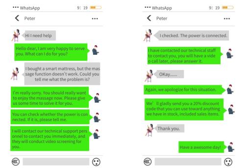 图为:常规服务场景在线聊天对话(模拟)