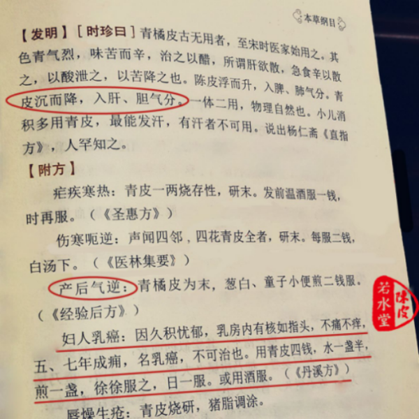 肝藏血。女子以养血为主。从月事、妊娠、生产、哺乳,莫不仰赖气血之充盈调和。青皮“疏利肝邪”,可祛邪存正,调和营卫。