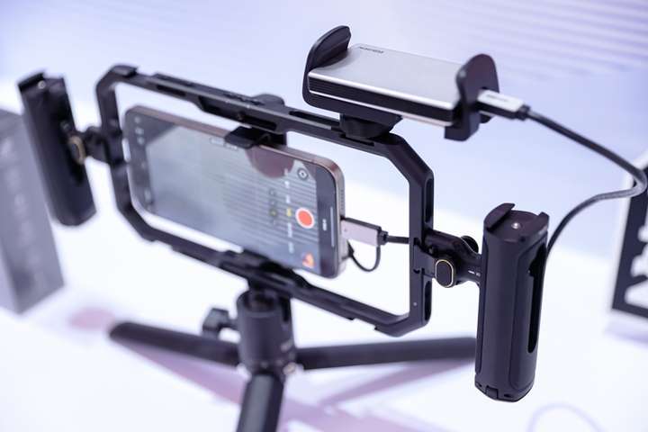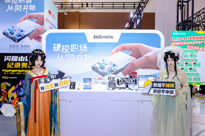 在现场我们也看到了致态利用兔笼来连接手机以及致态灵先锋版移动固态硬盘,整个融为一体,十分地和谐,用户可以将拍摄的超高清素材实时传输到灵移动固态硬盘之中,进而大幅拓展手机以及相机的容量,让其能够拍摄更长时间的视频。此外在致态展台现场我们也发现了小太人偶,十分地可爱,还会帮助观众如何正确地使用各种配件来让致态灵先锋版移动固态硬盘发挥最大的作用。