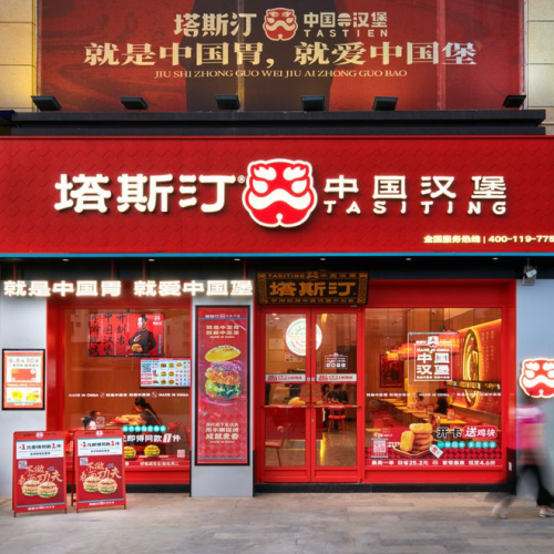 真正让塔斯汀蜕变为现象级品牌的,是其对新中式文化的深度绑定。塔斯汀将醒狮图腾、唐狮铃铛这些中国元素跃上门头,当“中国红”门头在300+座城市点亮,塔斯汀的扩张版图已超越物理空间的征服。那些印着塔狮图样的外卖包装,既是中式美学的物质载体,也是品牌引路人“做中国人自己的汉堡”的执念。