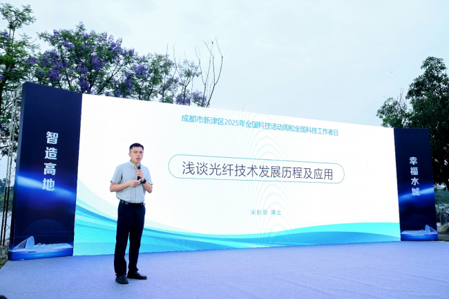 “解码”新津硬核科技路演环节,《浅谈光纤技术发展历程及应用》《常导电磁悬浮技术科普》《AI与你的生活:从“黑科技”到日常助手》三场路演用通俗易懂的语言解析前沿科技,让高深理论“接地气”,引发观众阵阵掌声。