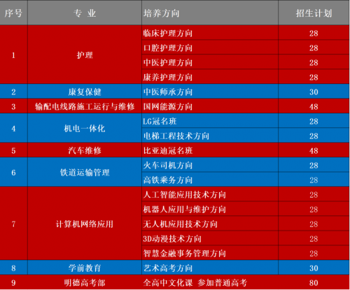 培养方向:明德高考部即便是中职学生,同样怀揣着就读本科院校的梦想!入学后,进行高中文化课的学习,开启为期三年的知识深耕之旅。从清晨诵读到深夜刷题,每一个日夜的付出,都是为普通高考全力冲刺。凭借这三年如一日的坚持,他们得以在考场上绽放光芒,叩响省内外本科院校的大门,让梦想照进现实 。