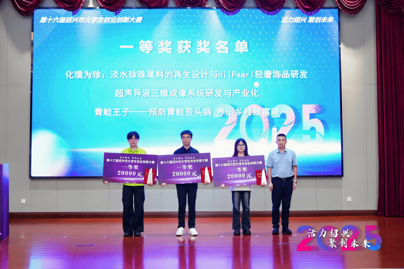 6月10日,决赛邀请经济学者、院校导师、创投界人士等15位专家组成评委团。通过项目路演、评委提问等环节,最终“化璞为珍——淡水珍珠尾料的再生设计与Hi!Pearl轻奢饰品研发”“超声导波三维成像系统研发与产业化”“青蛙王子——预防青蛙歪头病 养出乡村致富路”三个项目分别从三个赛道脱颖而出,摘得桂冠。