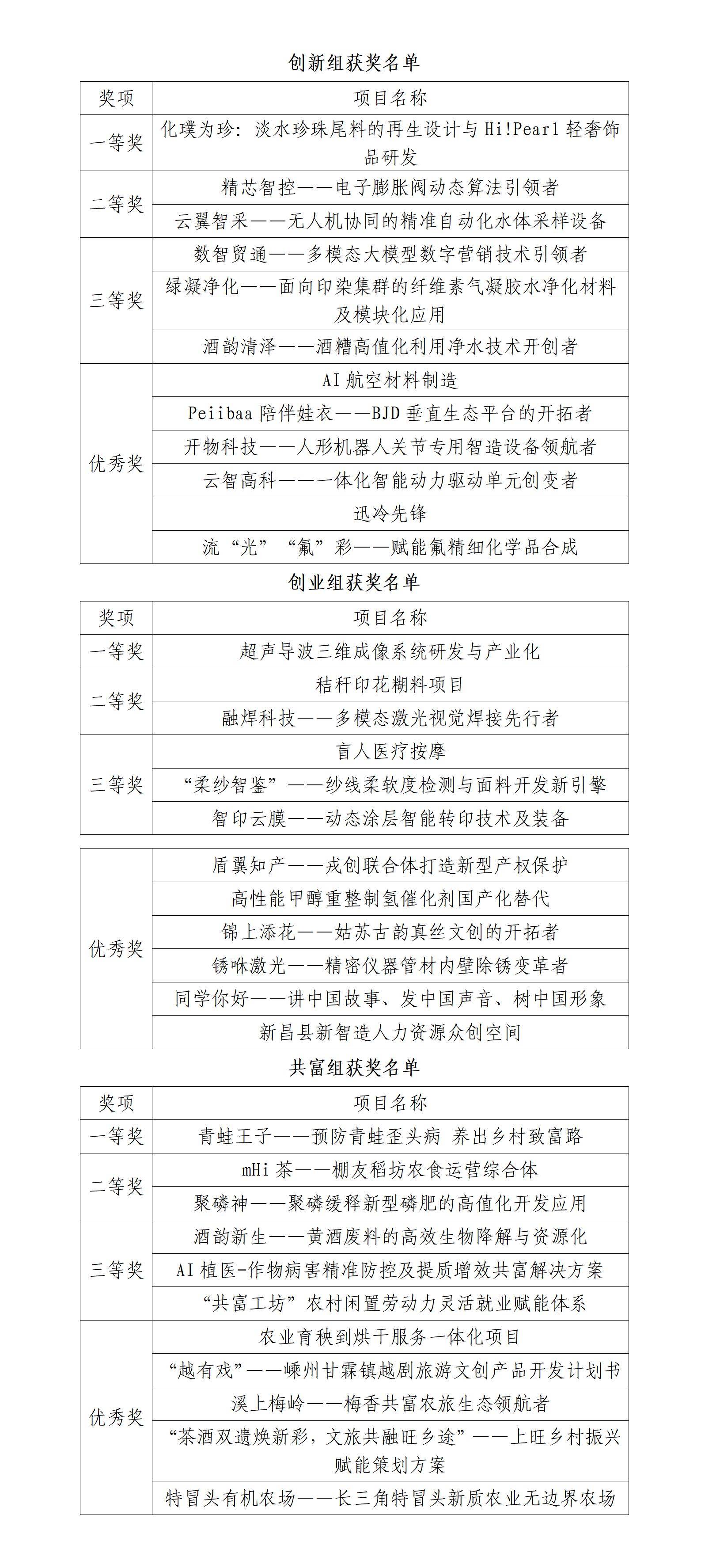 6月8日至9日为初赛评审阶段,五位专家从创新型、示范性、引领性、社会价值、带动就业、项目团队、发展现状和前景等方面进行了公平公正的评审,最终创新组、创业组和共富组三个赛道各评选出12个项目进入决赛。