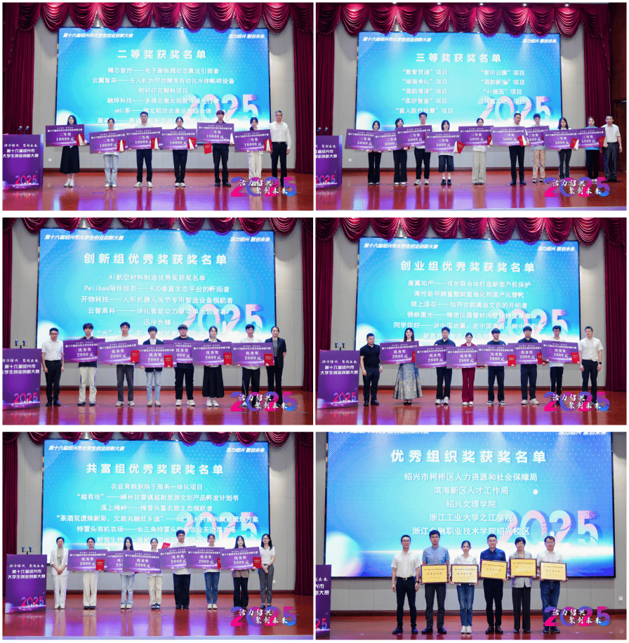 6月10日,第十六届绍兴市大学生创业创新大赛决赛在浙江工业大学之江学院圆满落幕,大赛由绍兴市人力资源和社会保障局、绍兴市教育局、绍兴市科技局、绍兴市农业农村局、绍兴市退役军人事务局、共青团绍兴市委、绍兴市残疾人联合会七部门联合主办。大赛以“活力绍兴 聚创未来”为主题,进一步弘扬“大众创业、万众创新”精神,更好释放创业带动就业的倍增效应,实现高质量充分就业。