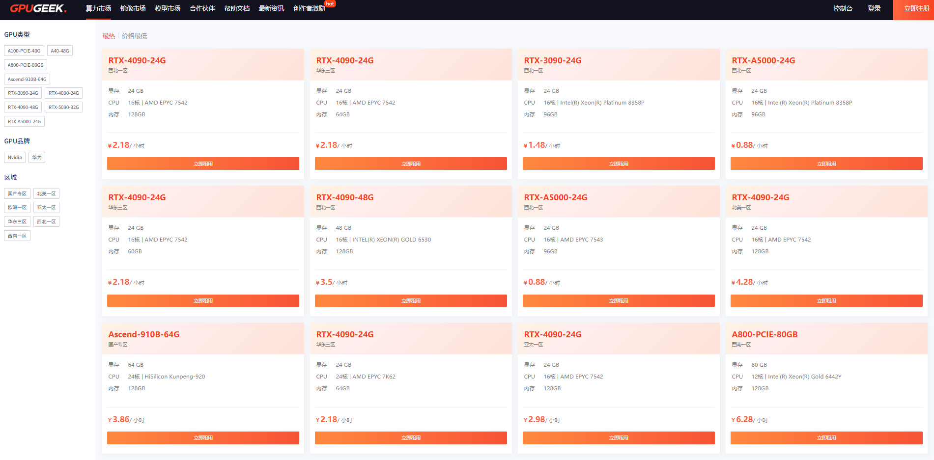 对于个人算法工程师和高校研究人员来说,获取稳定、高性能的算力资源往往是一大挑战。GpuGeek通过"算力界的滴滴"模式创新性地解决了这一问题。平台提供从RTX 4090/5090到高端A100/A800的全系列GPU资源,并创新采用按需计费模式,包括按秒计费、包天、包周、包月等多种选择,真正实现"用多少付多少"。