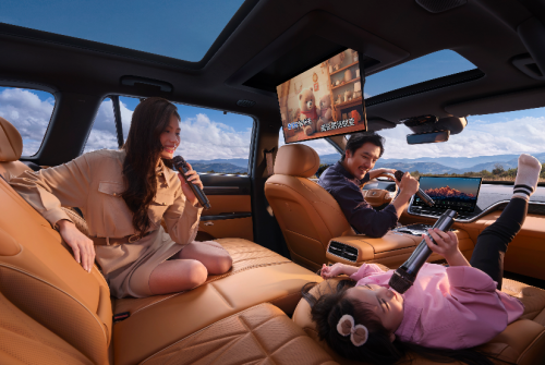 第一个是21.4英寸智能后排娱乐屏。对于有孩子的家庭来说,这绝对是"救命稻草"。长途旅行中,孩子可以看动画片、玩游戏,大人也能追剧放松。无线投屏功能让手机内容轻松分享到大屏上,全家人都能找到自己的娱乐方式。