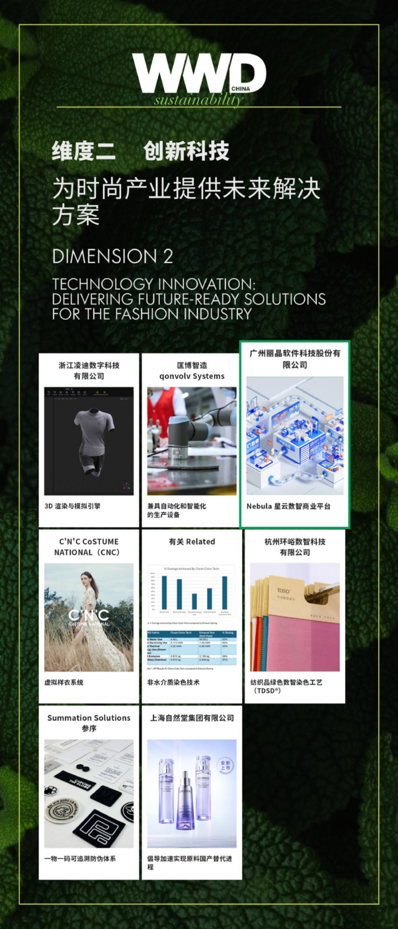 近日,国际权威时尚产业媒体WWD国际时尚特讯正式揭晓2025年度「Sustain 100可持续创意榜单」。丽晶软件凭借其自主研发的 “Nebula 星云数智商业平台”,在解决时尚行业关键痛点方面的卓越表现,荣登“创新科技”(Innovative Technology) 榜单。这标志着丽晶在推动时尚产业数字化、智能化、全球化及可持续发展方面的创新实力再次获得国际权威认证。
