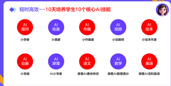 2024 年 12 月,教育部办公厅印发通知明确加强中小学人工智能教育,要求小学低年级侧重感知体验,高年级与初中阶段强化理解应用,高中阶段聚焦项目创作,构建 “学用结合” 的课程体系。作为国家级高新技术企业,伴鱼智学依托 7000 万用户实践与 3000 万节课的教研积累,推出 “10 天 AI 通识课”,精准响应政策要求 —— 课程以 “AI 提问、绘画、作曲、编程” 等 10 大核心技能为框架,设计 “小学者”“小画家”“AI 小专家” 等沉浸式角色模块,让学生在体验中掌握 AI 原理。