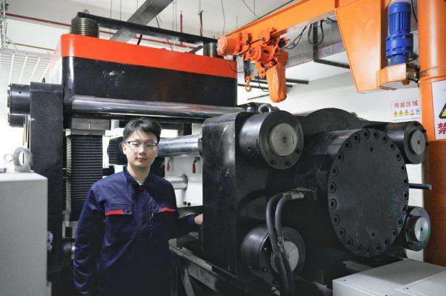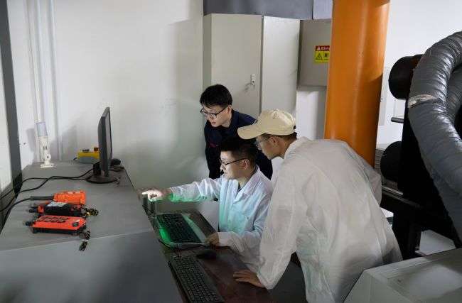 【图片:杨崎浩在实验室测试】