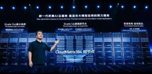 在HDC 2025大会上,华为云宣布基于CloudMatrix384超节点的新一代昇腾AI云服务全面上线,CloudMatrix384超节点是在去年发布的CloudMatrix架构下的首个生产级超节点,配合DeepSeek-R1万亿参数MoE模型,展现出超越NVIDIA H100/H800的推理性能,单卡推理吞吐量(即生产推理Token)跃升到2300 Tokens/s,超节点还支持训推算力一体化部署,在云数据中心还能将432个超节点级联成最高16万卡的超大集群。