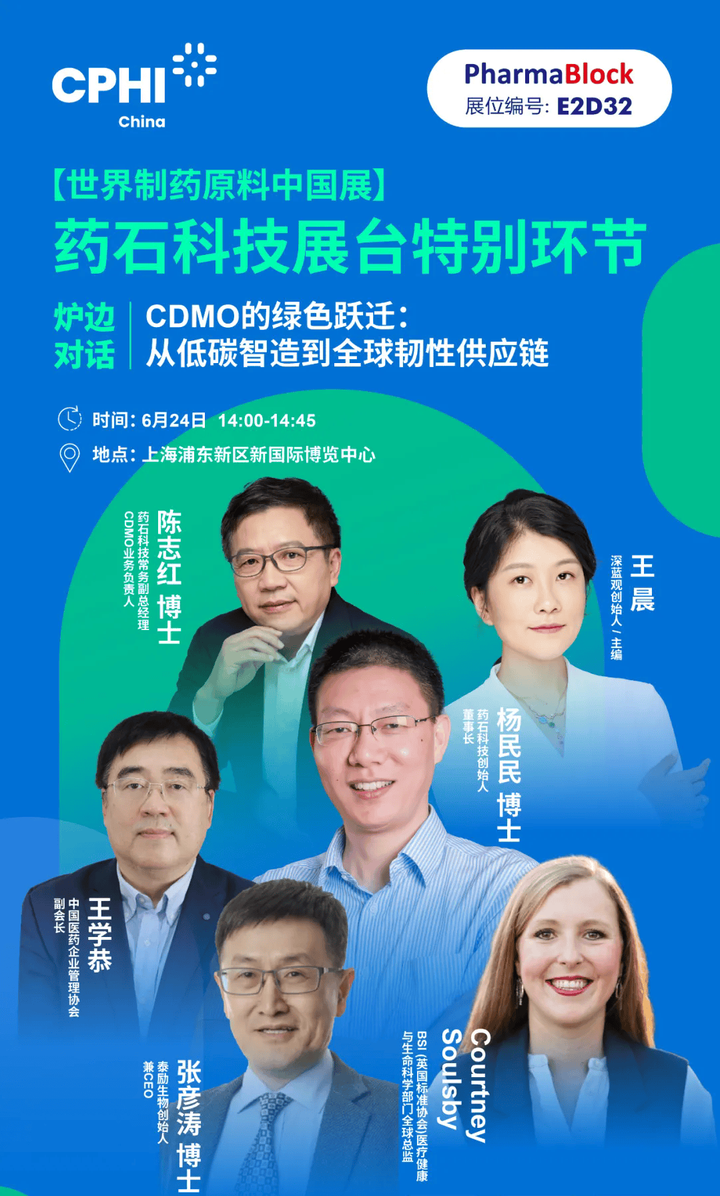 2025年6月24日,CPHI China展会现场,由深蓝观主持,一场聚焦CDMO行业绿色转型的炉边对话揭开了中国医药制造升级的深层逻辑。