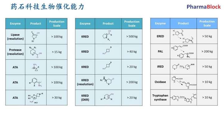 药石科技构建了覆盖酶挖掘、定向进化、发酵制备的完整技术链,常备酶库超1000种。在非天然氨基酸合成中,采用氨基酸裂解酶(PAL)替代传统拆分工艺,理论收率从低于50%提升至100%,实际收率达55%-70%,PMI显著降低;烯烃还原酶技术解决传统重金属催化选择性差的问题,实现碳碳双键高效还原。2024年完成的吨级亚胺还原酶项目,通过三代酶进化将酶用量从30%降至1%~2%,选择性提升至99%以上。