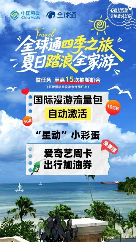 ·海岛上的“星动”小彩蛋: 慵懒地躺在沙滩上,椰林树影,海风习习。忽然想起又到了月底的“全球通星动日”。顺手点开APP,领了张出行加油券(虽然岛上用不到,但回国能用),还给闺蜜送了张爱奇艺周卡(银卡及以上可领)。这份小福利,让海岛的悠闲时光多了一丝分享的乐趣。
