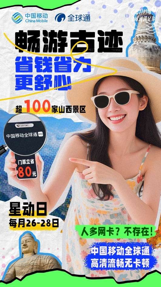 暑假的机票刚订好,心就跟着飞走了!这次计划很贪心:先带爸妈深度游山西,感受五台山的清凉和古城的厚重;再和闺蜜直奔东南亚拥抱阳光沙滩。作为一个“资深”全球通用户,我深知这场旅程的省心与尊贵,早就不声不响地安排上了——全靠那无处不在的全球通“五大尊享”权益!