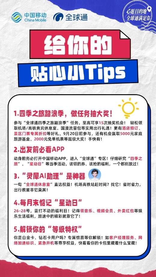 我的全球通旅行哲学:这个暑假的旅程,全球通的“五大尊享”礼遇就像一路相伴的“隐形管家”: