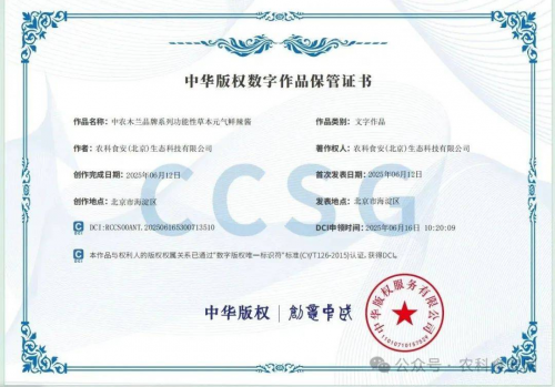 生产研制配方已于2025年6月16日获得国家版权中心确权保护!