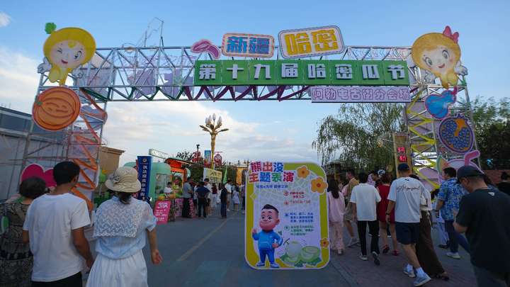 作为哈密瓜节的重要分会场之一,阿勒屯古街在“熊出没”IP的加持下焕发出全新活力,成为当天各族群众和广大游客争相打卡的热门景点。融合本土绘画风格的熊出没墙体画,全街悬挂的主题灯串,为古街增添了独特的文化和氛围气息。传统艺术与现代动漫在此激烈碰撞,形成别具一格的亮丽风景,吸引各族群众和游客们驻足观赏与合影留念。“带孩子来参加活动太值了!不仅感受到哈密当地氛围,品尝了又脆又甜的哈密瓜,还见到了孩子最喜欢的熊大熊二。最惊喜的是文产店,我给孩子和家人都挑选了礼物,他们特别喜欢。”暑期到哈密旅游的秦女士说。