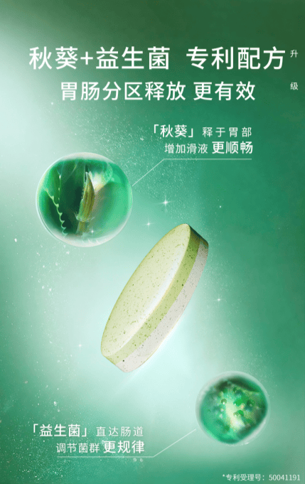 在现有产品取得卓越市场认可的基础上,本次推出的新一代百草园清清片在技术上进行了全新升级。Mom's Garden百草园开创性采用胃肠双区靶向释放系统,可精准实现天然秋葵、益生菌两大核心成分的分层释放。人体服用后,产品中的秋葵提取物可于胃部完成崩解,迅速补充黏液蛋白,软化干硬粪便;新增益生菌种则借助创新缓控释技术,有效抵御胃酸侵蚀,直达结肠释放,从而高效调节肠道菌群平衡。