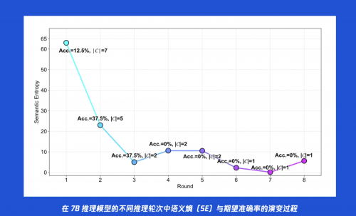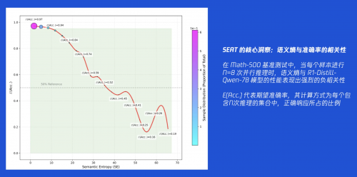SEAT 论文最重要的实证发现:模型的推理准确率与语义熵存在强烈的负相关性。 这条“黄金法则”在说,当推理结果的“困惑度”降低,则表明模型多路推理分支达成共识,这时它给出的答案有极大概率是正确的!这个发现的可贵之处在于,它意味着我们找到了一个不依赖外部知识、纯粹依靠模型自身输出就能判断其推理质量的自监督指标。这个“导航传感器”是真实、可靠且有效的。