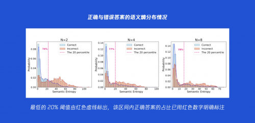 · 高熵 (High Entropy):如果 N 个答案五花八门,语义上南辕北辙(比如,一个答案 是“68”,另一个是“苹果”,还有一个是“不确定,我再想想”),这说明模型的并行推理分支的推导方向分歧巨大,处于高度“困惑”的状态。此时,“航向一致性检测仪”的读数会飙高。