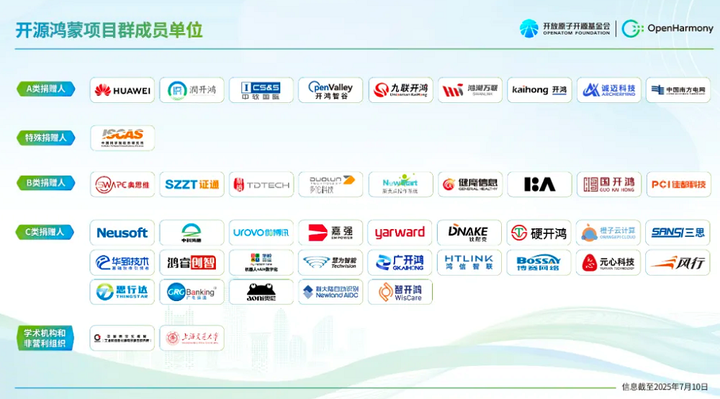 企业合作矩阵:在协作共治层面,40+家项目群成员单位深度参与社区联合治理,从技术共建到生态共拓,各方优势互补、资源共享,形成推动开源鸿蒙发展的强大合力。
