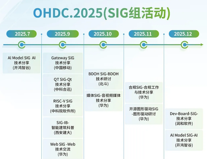 开发者专属通道:社区将首次对外披露2025开源鸿蒙开发者系列会议规划(SIG组活动),全国10+场技术盛会涵盖技术研讨、培训讲座、项目交流,旨在打造繁荣的社区技术开发生态。