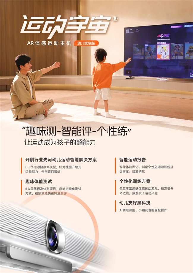 针对儿童体质体能训练等场景,运动宇宙·幼儿家庭版以“智测趣练”为理念,依托数联天下C-life运动健康大数据模型与AI视觉算法等核心技术,开创行业先河打通“趣味体测-智能评估-个性训练”全链路,构建“测-评-练”闭环式家庭运动解决方案,精准破解儿童体质体能发展痛点,为幼儿家庭带来“AI科技+运动健康”深度融合的全新运动体验。