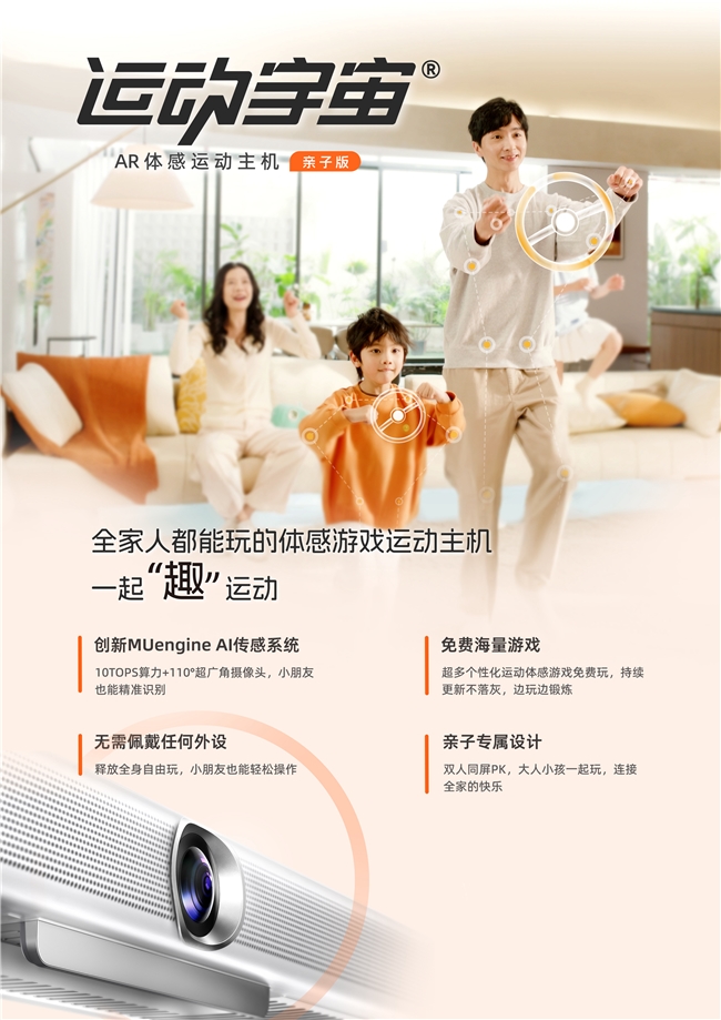 运动宇宙·亲子版服务亲子家庭用户,通过融合大数据、边缘计算与AR技术打造沉浸式运动场景,让孩子们享受运动乐趣。同时,亲子互动模式增进家庭情感,让运动成为家庭共享的美好时光,是孩子们的智能运动乐园,也是家庭的欢乐源泉。