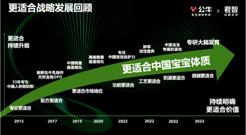 君智认为,每个企业都是独一无二的,不存在所谓最佳实践。所以君智强调差异化战略,因为差异化才能真正赋能护城河,实现“不战而屈人之兵”。例如,君智借助一方水土养一方人的常识,协助飞鹤确立了“更适合中国宝宝的奶粉”战略方向,明确差异化价值。此后,飞鹤每年都会在奶源、工艺、配方等方面持续明确和升级“更适合”价值,并通过不同的、持续升级的方式与顾客沟通这一核心价值。