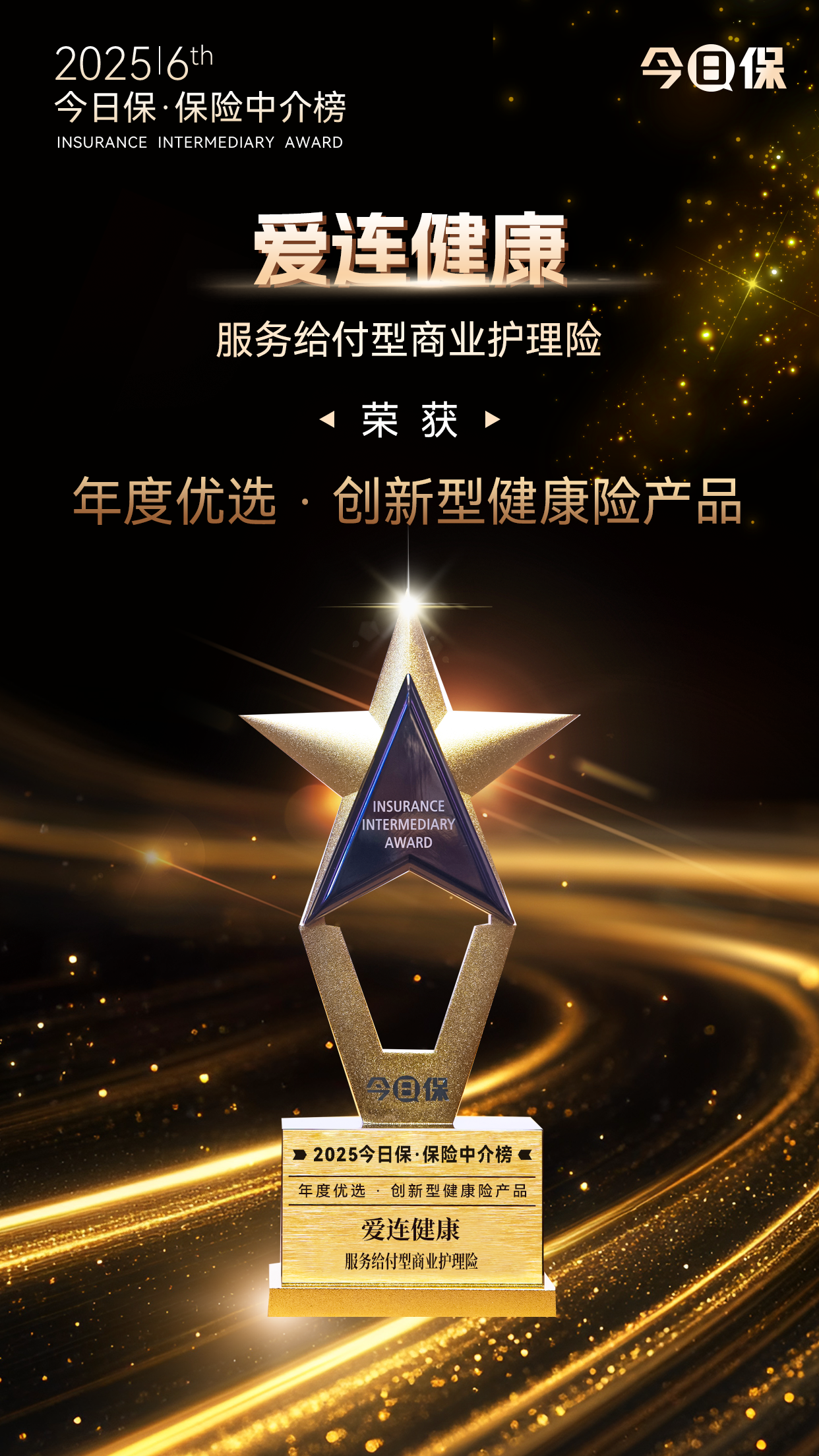 近日,“2025今日保·保险中介榜”颁奖典礼召开,爱连健康凭借行业首创的“服务给付型商业护理险”荣膺“年度优选创新型健康险产品”,这一奖项不仅是对爱连健康产品创新力的肯定,更标志着其开创的“保险+服务”融合模式获得行业高度认可。