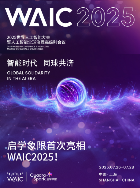 在 2025世界人工智能大会 (WAIC2025) 期间,启学象限热忱邀请您与我们一同与时代同频,共同汇聚磅礴的创新之力。我们将致力于推动 AI技术普惠向善,加速 智能世界向好 的发展。