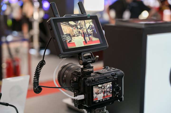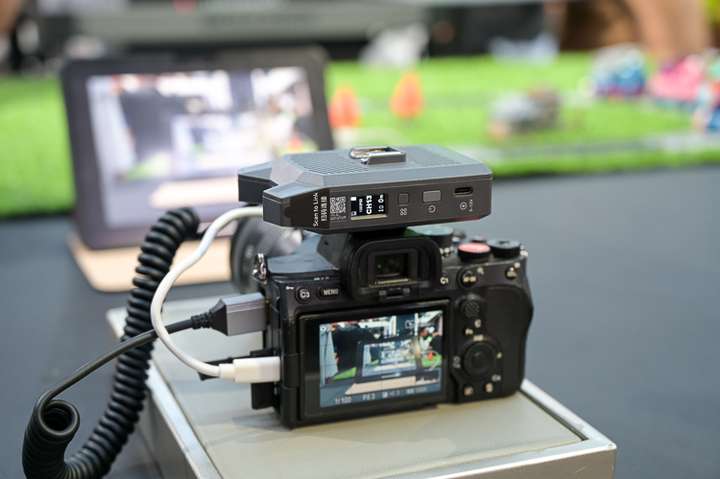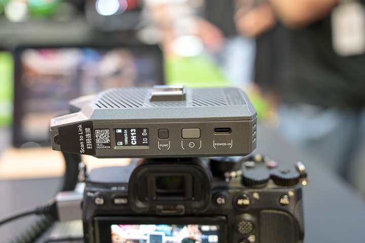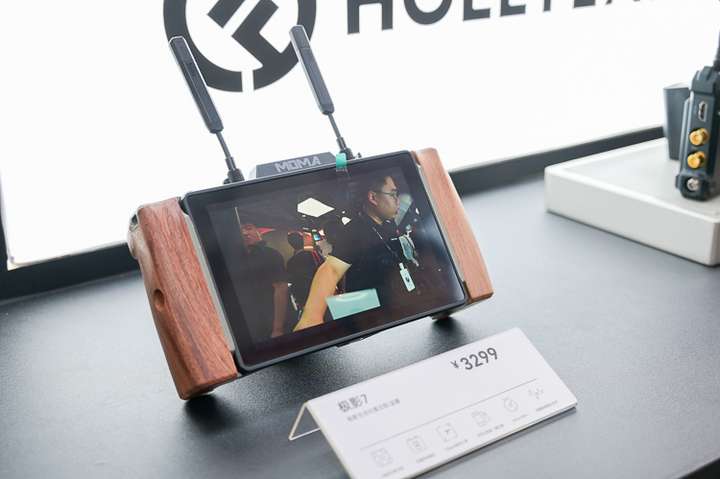 还未正式发布的微影图传成为现场焦点。这款产品据说定价极为亲民,但拥有高端机型的旗舰技术下放,支持Wi-Fi直连手机/平板的无接收器监看模式,内置采集卡可输出4K30帧画质,配合一发四收功能满足团队协作需求。